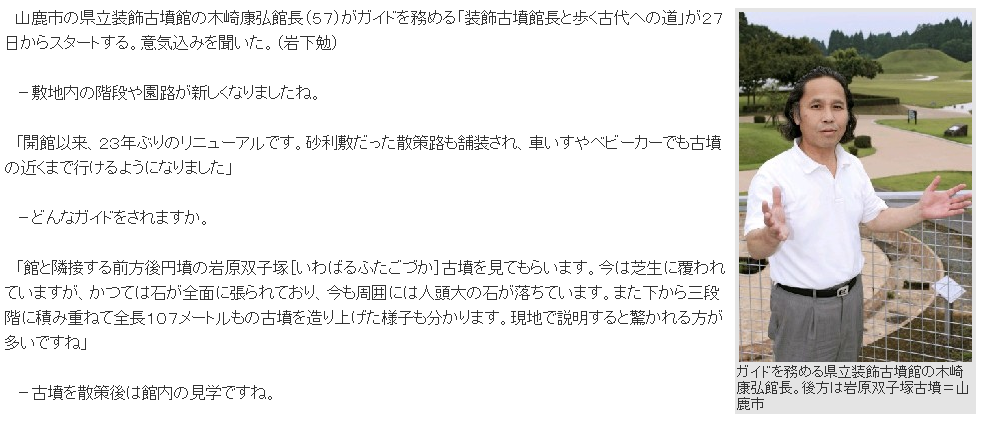 熊本県立装飾古墳館の木崎康弘館長(57)がガイドを務める「装飾古墳館長と歩く古代への道」が27日からスタートする。意気込みを聞いた。「装飾古墳館長と歩く古代への道」は7月18日までの毎週金曜日と、19~21日開催。午前8時半から。参加無料。