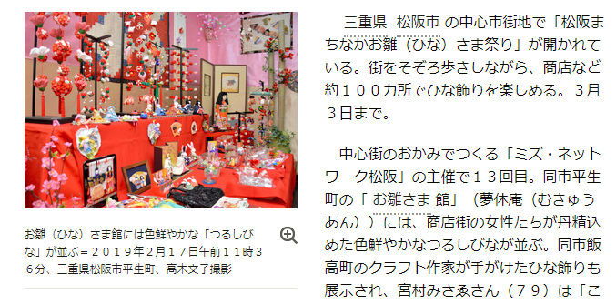 松阪中心街で「まちなかひな祭り」│三重県