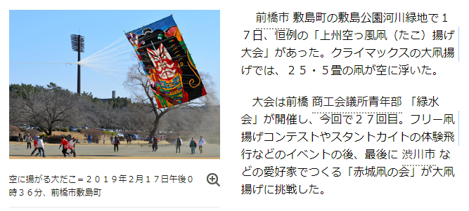 前橋の空に巨大凧ふわり上州空っ風凧揚げ大会│群馬県