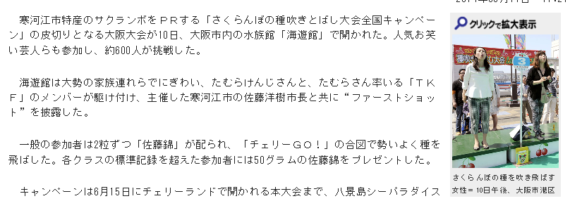 合図は「チェリーGO!」 寒河江産さくらんぼ種飛ばし大阪大会│大阪府