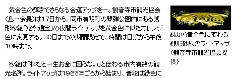 銭形砂絵ライトアップ変更 緑色から「黄金色」に│香川県