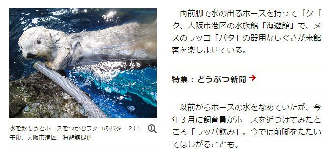 ラッコがラッパ飲み ホース持ちゴクゴク│大阪府