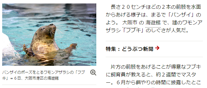 「バンザイ」が注目の的 大阪・海遊館のワモンアザラシ│大阪府