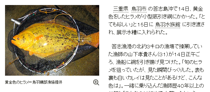 黄金色のヒラメ、漁師の網に…三重・鳥羽水族館で展示│三重県