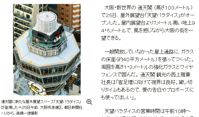 通天閣てっぺん、見晴らし最高 初の屋外展望台オープン│大阪府