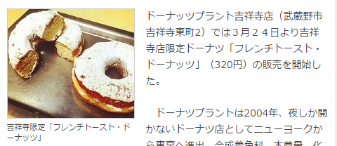 「ドーナッツプラント吉祥寺店」店、「フレンチトースト・ドーナッツ」限定販売│東京都
