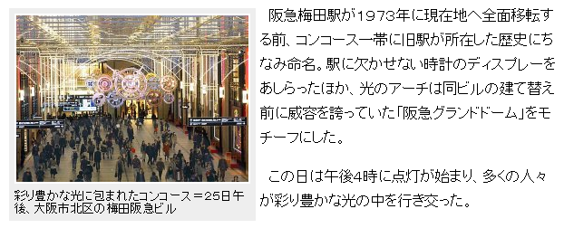 人々優しく包む 梅田阪急ビルでクリスマスイルミ│大阪府