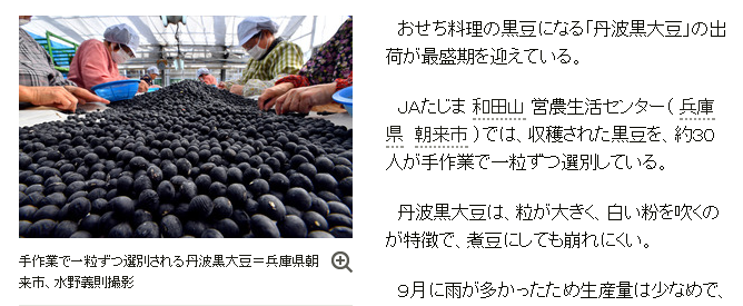 丹波黒大豆、お正月へ出荷最盛期│兵庫県