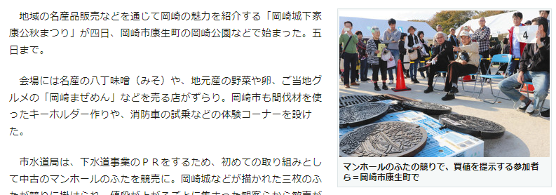 マンホールのふた、水道局が競売 岡崎で家康公秋まつり│愛知県