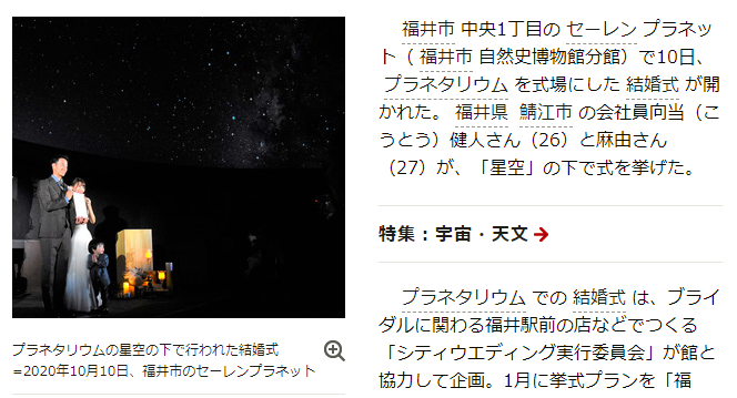 プラネタリウムの星空の下で結婚式│福井県