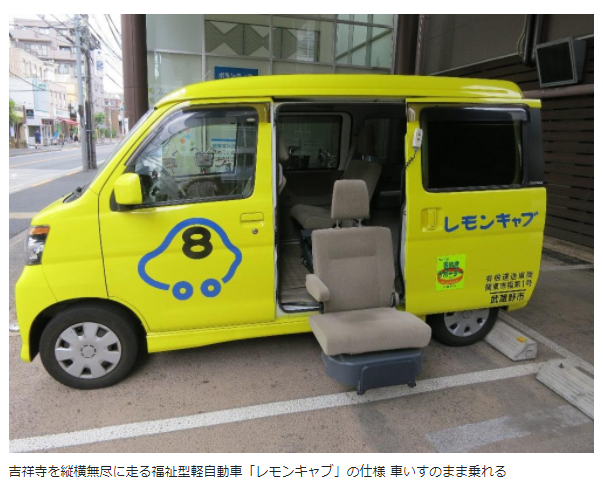 吉祥寺の街を走る福祉型軽自動車「レモンキャブ」が10月、モデル事業期間を経て本格的に運行を始めて20周年を迎えた。「1人で公共交通機関を利用することが困難な人」を病院や買い物先などに移送する外出支援サービスとして始まった同事業。米穀店の店主から「配達先で買い物を頼まれたり、近くまで乗せてほしいなどの依頼があったりする。手の空く時間を使って地域の役に立ちたい」との声をきっかけに、1999年、「武蔵野市新たな移送サービス事業研究会」を立ち上げた。運行時間は原則8時~18時。日曜・祝日と年末年始は運休。
