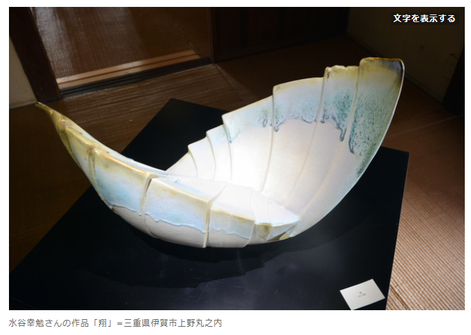三重県内の陶芸家32人の力作を紹介する「三重の陶芸家展in伊賀『陶の現在を創る者たち』」が22日、伊賀市で始まった。国史跡・旧崇広堂、赤井家住宅と入交家住宅の両武家屋敷に展示したのは、約300点。伝統的な造形や独創性あふれるオブジェがあり、技、思い、表現力が共演する。31日まで、入場無料。