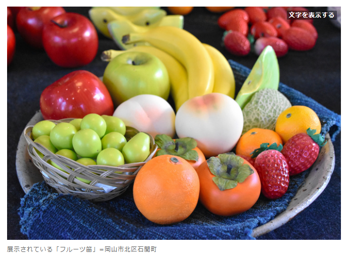 おいしそうなバナナやメロン……、ではなくオカリナです。フルーツを模したオカリナ「フルーツ笛」の作品展が岡山市北区のパブリックカウンターで開かれている。市内のオカリナ演奏家が果物王国・岡山をPRしようと作った。展示会は8日まで。