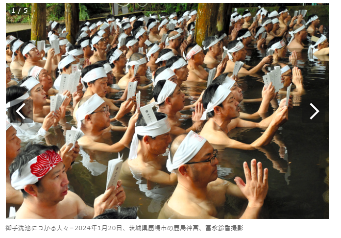 鹿島神社で「大寒みそぎ」。胸まで池につかって能登復興の祈りも│茨城県