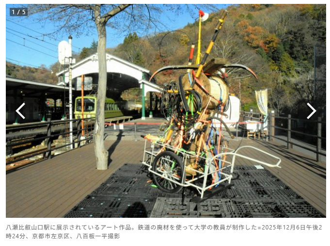 開業100年を迎えた叡山電車の駅に、大学生や大学教員が制作したアート作品が展示されている。節目の年にあわせて、叡山電車と、その沿線にある京都精華大学、京都芸術大学が企画。叡山本線と鞍馬線の計15の駅に、学生らが手がけた作品を並べた。6日は、作品を手がけた学生や教員が、駅の利用者らに、制作過程や思いを説明した。