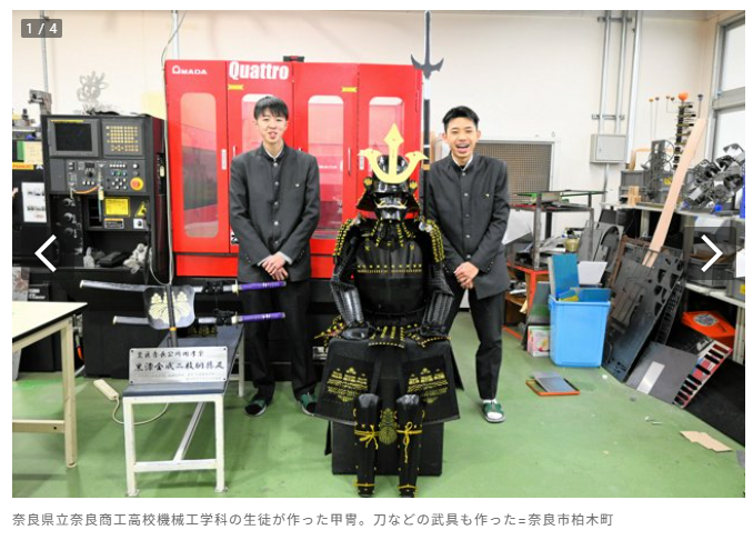 豊臣秀長の甲冑、高3生が金属加工で再現│奈良県