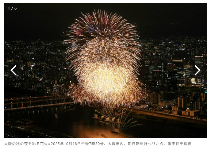 「なにわ淀川花火大会」が18日、大阪市の淀川河川敷で行われた。毎年8月に行われ、大阪の「夏の風物詩」として親しまれているが、今年は大阪・関西万博の会期との重複を避けて、10月に変更して実施された。