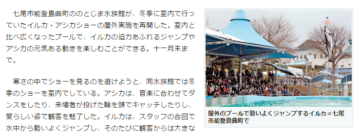 のとじま水族館 春到来 屋外ショー再開│石川県