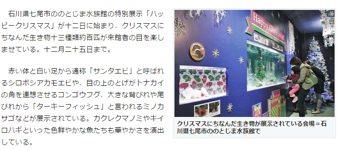 一足早く 海のサンタ登場 のとじま水族館 クリスマス特別展│石川県