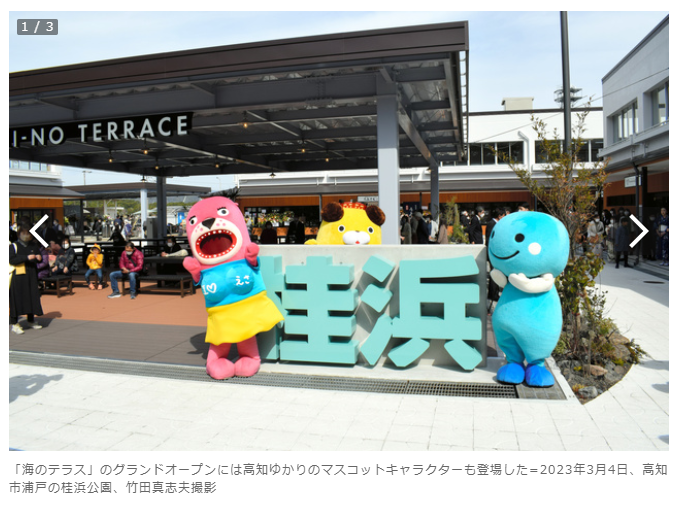 坂本龍馬像が立つ観光名所の桂浜公園で、商業施設が約40年ぶりにリニューアルし、4日に全面開業した。商業施設の名称は「海のテラス」で、土産物屋や飲食店など10店舗が入る。